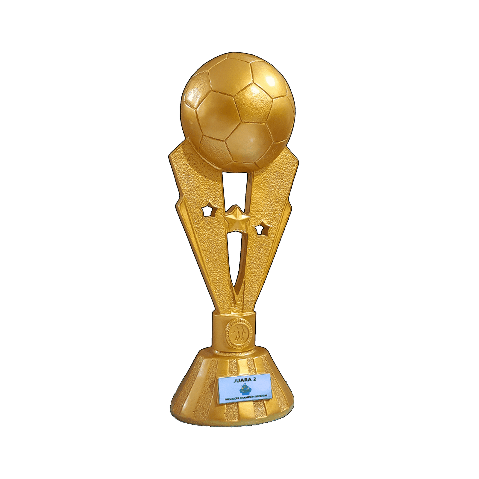 Raikan setiap gol dan kemenangan dengan piala “BOLA V-PR” dari GoTrophy. Dirancang khusus untuk turnamen sepak bola dan futsal, piala ini memiliki dimensi keseluruhan tinggi 45 cm dan lebar 17 cm, dengan alas oval berukuran 16 cm x 12 cm yang kokoh. Terbuat dari bahan resin berkualitas tinggi dan dilapisi warna emas yang mewah, “BOLA V-PR” menghadirkan kesan elegan dan berkelas. Dilengkapi dengan ruang untuk tulisan berukuran 7 cm x 3 cm, Anda dapat mempersonalisasi piala ini dengan nama juara dan detail turnamen. “BOLA V-PR” adalah pilihan sempurna untuk memberikan penghargaan yang tak terlupakan bagi para atlet berprestasi.