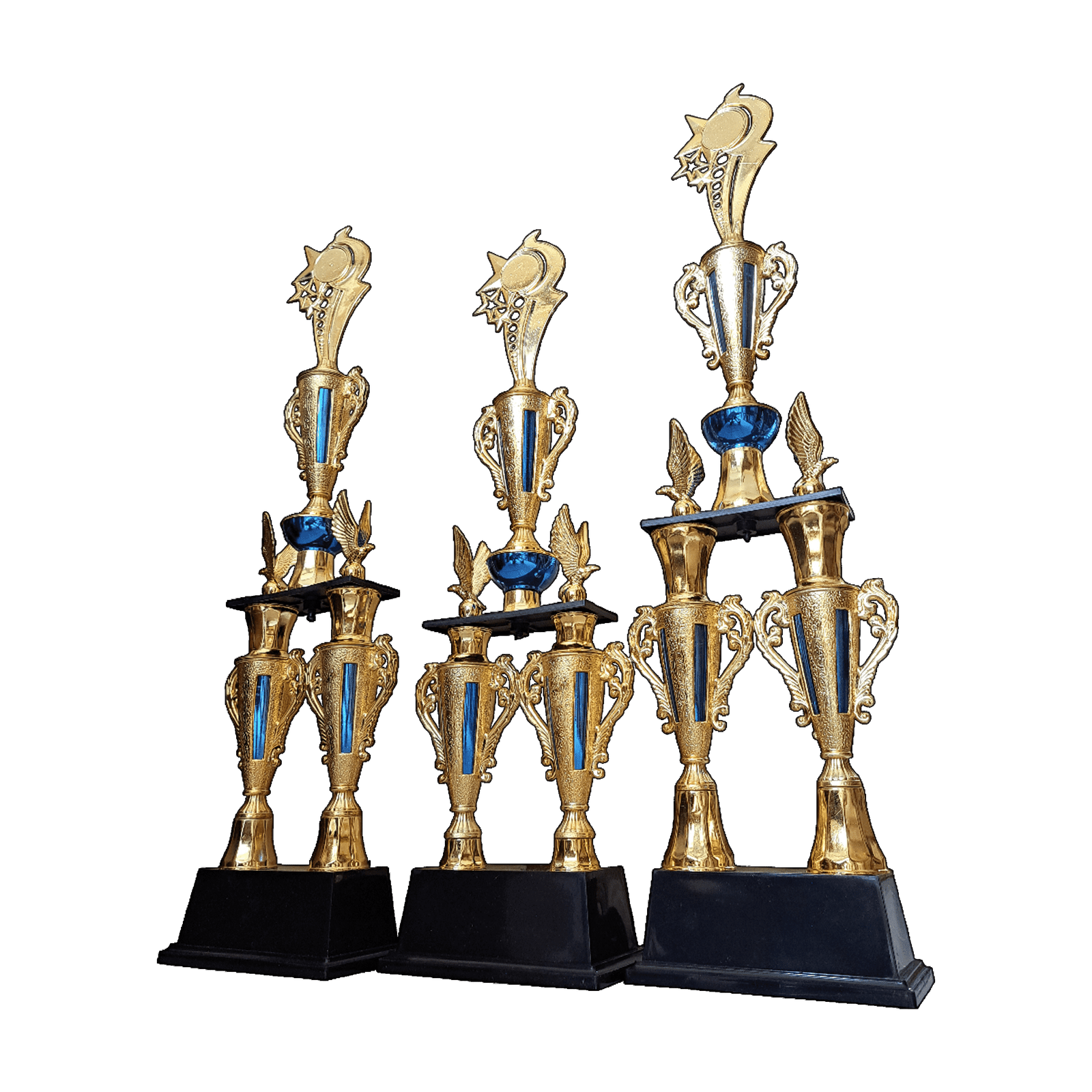 Raih prestasi gemilang dengan set piala elegan GoTrophy K2-224! Terdiri dari 3 piala dengan tinggi bervariasi (86,5 cm, 79 cm, dan 74,5 cm), set ini cocok untuk berbagai jenis lomba dan kegiatan.