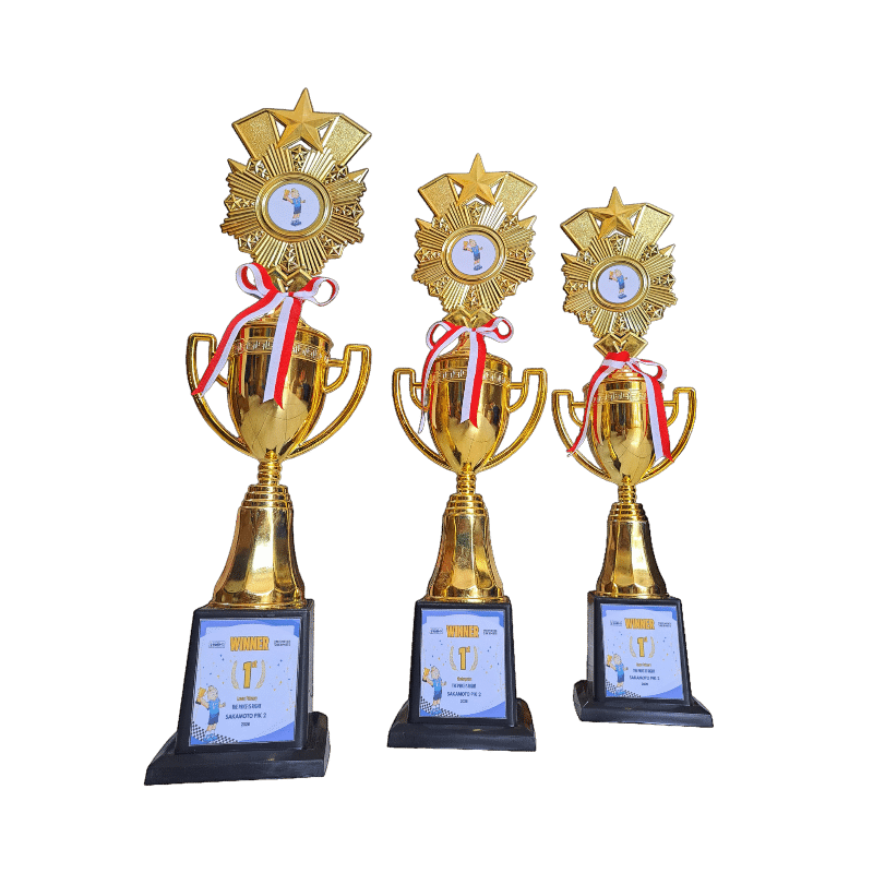 Ringan & Aman: Karena seluruhnya berbahan plastik berkualitas, piala ini sangat aman diberikan kepada anak-anak (lomba TK/SD) karena tidak berat dan tidak pecah berkeping-keping jika terjatuh.