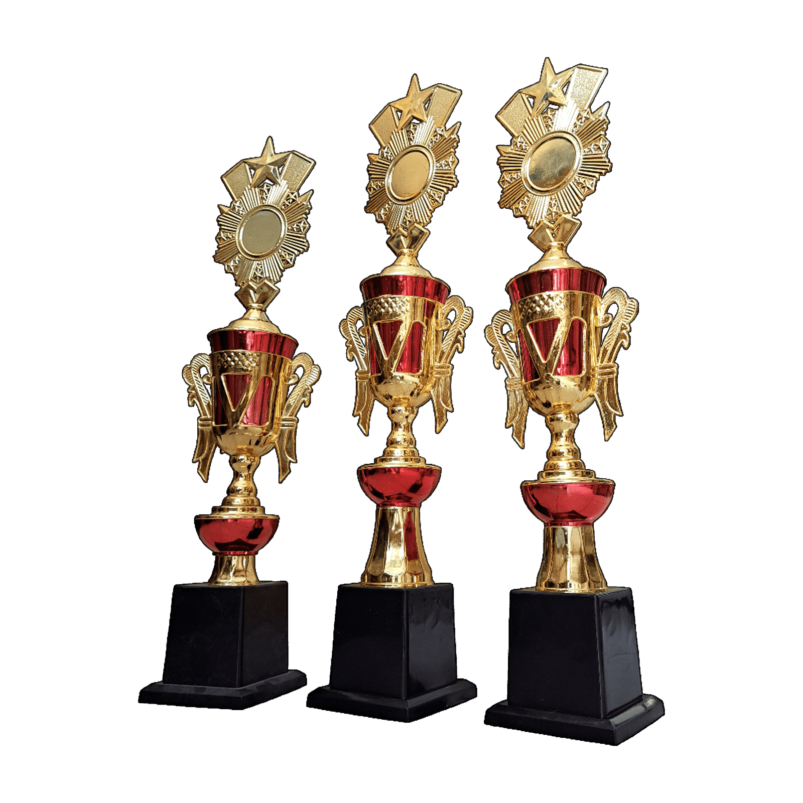 Piala S105 merupakan pilihan ideal untuk berbagai jenis lomba umum. Dibuat dengan material berkualitas dan desain elegan, piala ini tersedia dalam 3 ukuran untuk juara 1, 2, dan 3.