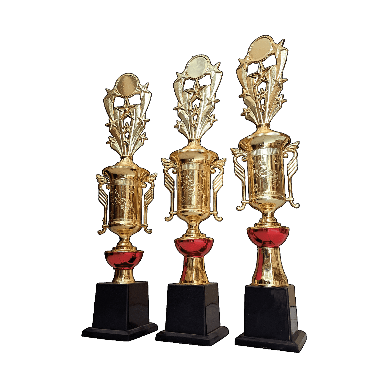 Piala S107 adalah pilihan tepat untuk berbagai lomba umum. Desainnya yang megah dengan figur berbahan plastik setinggi 20 cm (FG-27) menobatkan para juara dengan elegan. Piala ini memiliki pilar bertingkat yang unik dengan kombinasi warna emas dan merah, terbuat dari material plastik berkualitas. Base hitam kokoh (W4) menyempurnakan keseluruhan tampilan. Piala S107 siap menjadi simbol prestasi yang membanggakan!