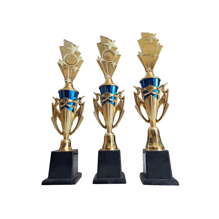 Dapatkan piala dengan ukuran yang memuaskan tanpa harus merogoh kocek dalam-dalam dengan Piala Set S145. Kelebihan utama seri ini adalah kombinasi Tinggi (52,5cm) dan Berat (Kaki Kayu). Sangat jarang mendapatkan spesifikasi setinggi ini dengan tatakan kayu di harga Rp 120 ribuan.
